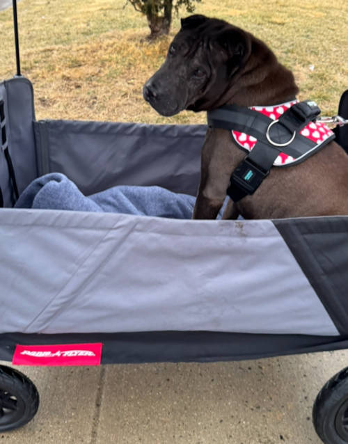 Hershey 2025 - just celebrated my 15th birthday. Enjoying rides to the park in my wagon 🙂Happy and healthy at 15 years oldNope...not spoiled at all 🙂