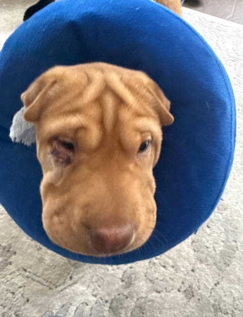 Sasha Enjoying the snow at my furever home!Furever brother Benny (left) and me!First Christmas with my furever family...me, and fur siblings Kit and BennyMe on the right, with BennyWearing the "donut" after my eye tacking